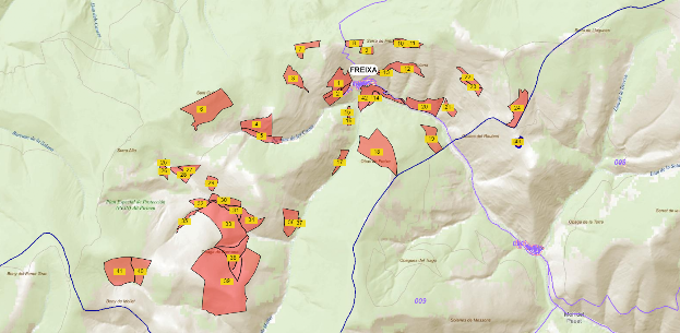 47 rustic plots for sale, all around the town of Freixa, municipality of Soriguera. A total of 903,919 m2 with meadows, forest and pasture land.